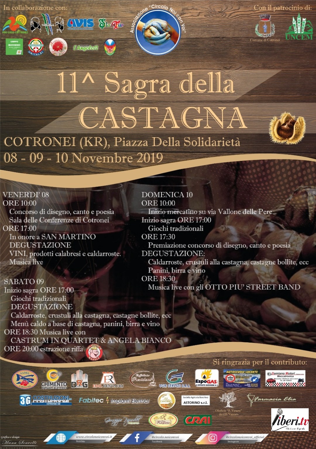 “Un grosso successo mediatico sta riscuotendo questa edizione della “Sagra della Castagna” di Cotronei” ha dichiarato il promoter Giuseppe Pipicelli, che sta curando l’aspetto artistico e promozionale della manifestazione “come non si era mai visto prima, grazie innanzitutto al supporto avuto dalla webTV Liberi.TV e dalla segreteria organizzativa della band “Angela Bianco ed i Castrum in Quartet”, a dimostrazione che al giorno d’oggi, per avere successo, bisogna puntare sulla comunicazione e sulle nuove tecnologie.
