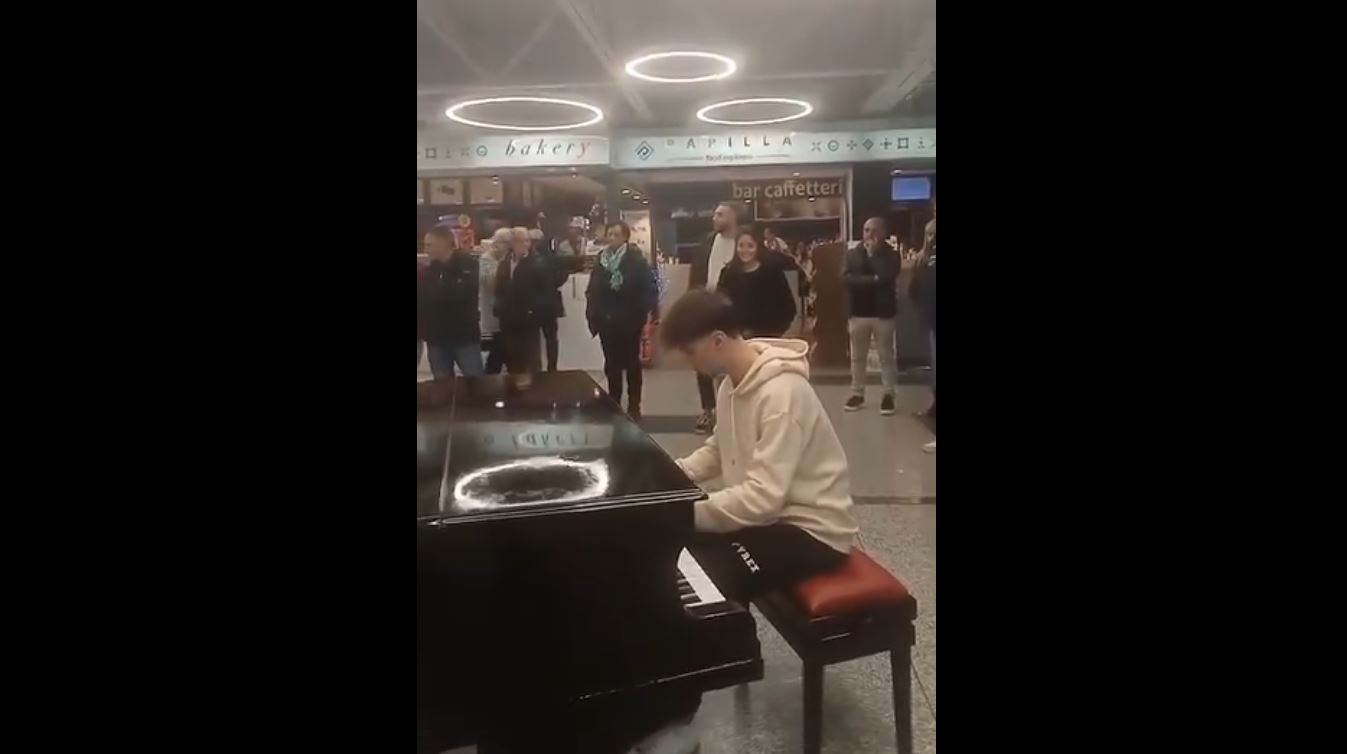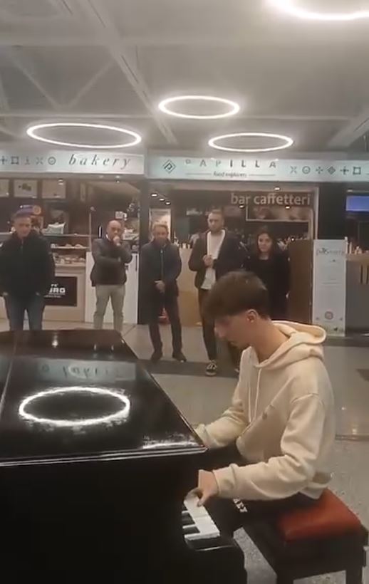 Pierpaolo Magnelli, 17enne di Cosenza, si trovava nell’aeroporto di Lamezia Terme in attesa di partire per Bologna con la famiglia. Alla visione del pianoforte il suo amore per la musica ha preso il sopravvento e così ha deciso di sedersi per posare qualche dito su quei tasti bianchi e neri.