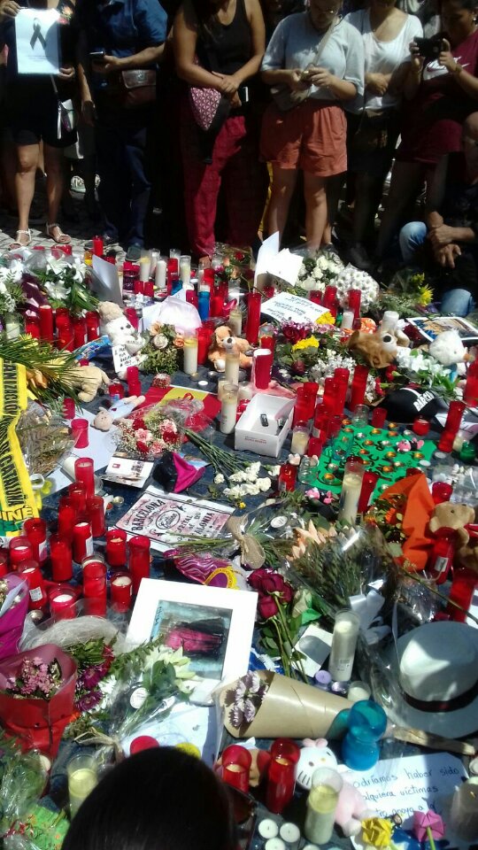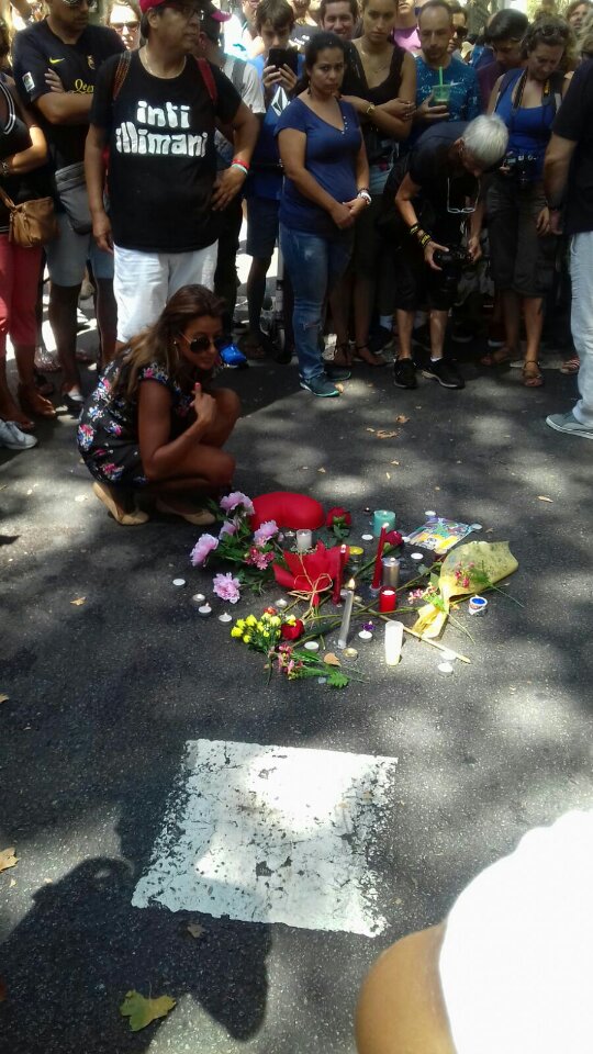 Ora siamo alla manifestazione di commemorazione delle vittime, dalla quale vi stiamo mandando le immagini in diretta. Qui c’è un clima e silenzio surreale. Una Rambla solitamente gremita da turisti …è semplicemente irriconoscibile.