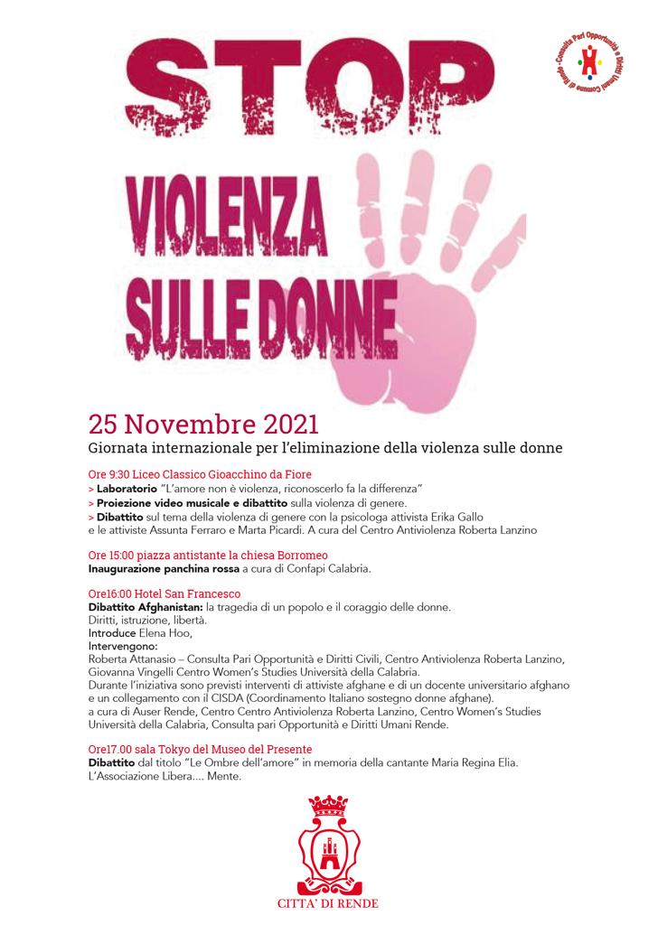 “Giovedì 25 novembre alle h 10:30, di concerto con la consulta Pari Opportunità e Diritti Umani, l’amministrazione Manna, promuove l’idea progettuale del centro antiviolenza “R. Lanzino” che vedrà coinvolti gli alunni del liceo classico Gioacchino da Fiore di Rende in un laboratorio dal titolo “l’amore non è violenza.”