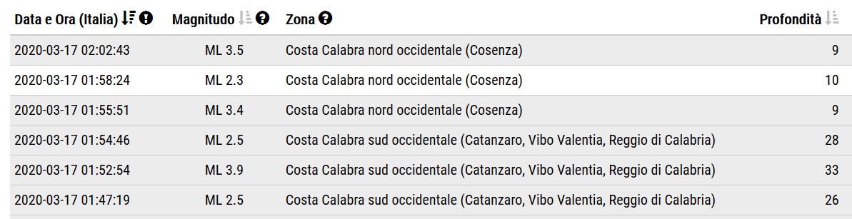Questi i dati ufficiali dal centro INGV in sequenza cronologica: