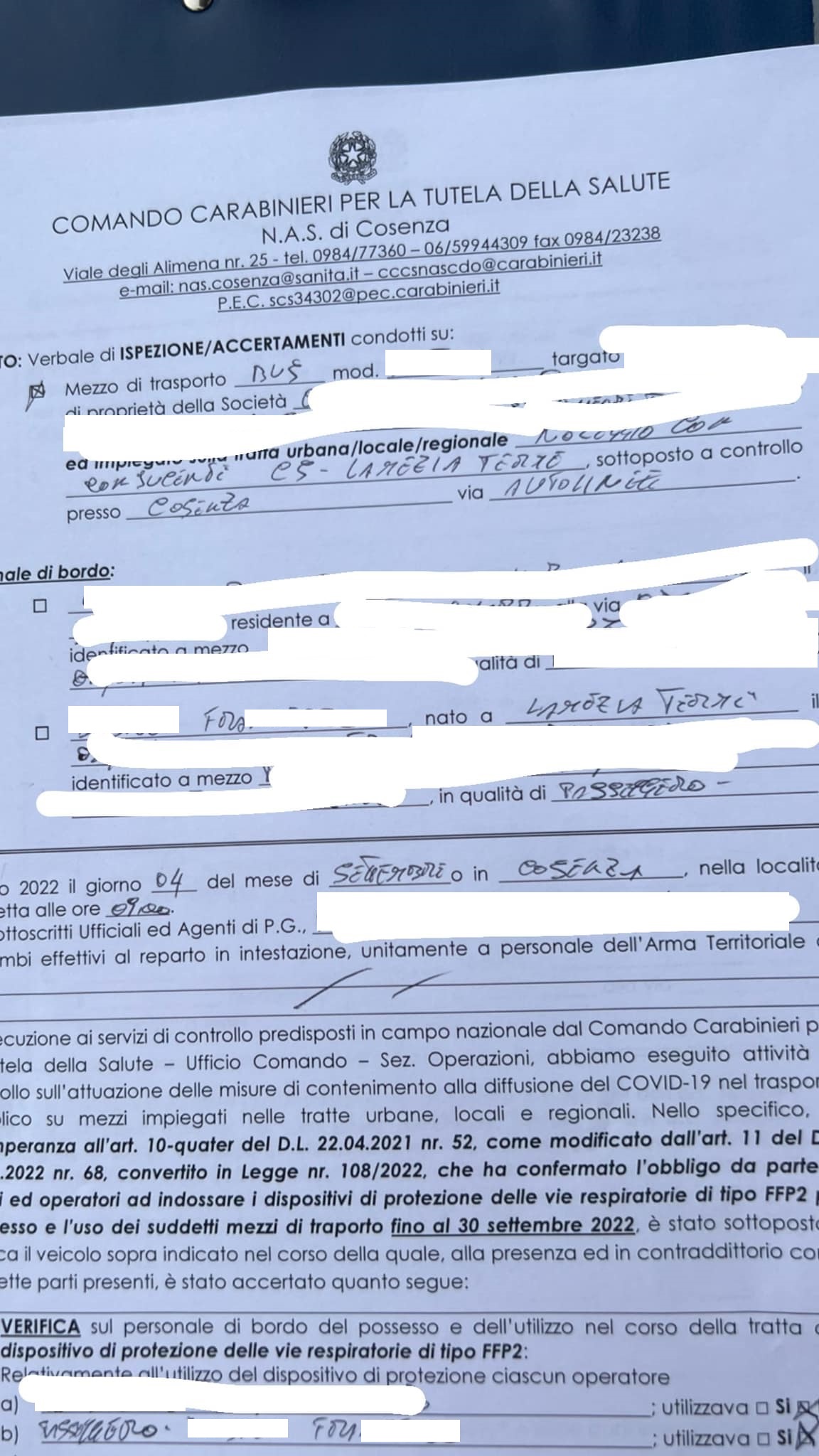 “400€ di multa per non aver indossato la mascherina, da solo su un autobus noleggiato privatamente”