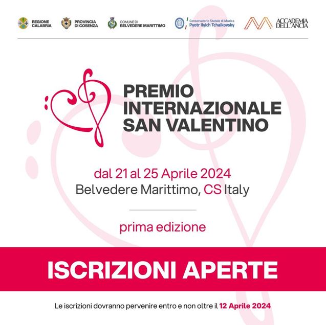 “Il Concorso Musicale organizzato dall’Accademia Dell’Ancia è dedicato a San Valentino in quanto a Belvedere Marittimo sono custodite le reliquie presso il Convento dei Padri Cappuccini. Premio Internazionale San Valentino, frutto di una collaborazione con l’Amministrazione Comunale di Belvedere Marittimo, si pone come un palcoscenico eccezionale per talenti emergenti del panorama musicale, offrendo loro una vetrina esclusiva per esibire le proprie abilità artistiche.