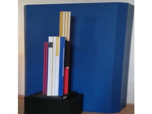 Il collegamento prescelto é stato il mondo contemporaneo dell’arte pittorica, dove le parole diventano superflue e a parlare sono le immagini. E le opere di Renzo Eusebi sono sembrate le più idonee perché esprimono, attraverso l’esplosione dei colori primari e le forme geometriche portate quasi all’esasperazione, un mondo nuovo e lontano da quello delle pergamene e delle documentazioni storiche in genere.