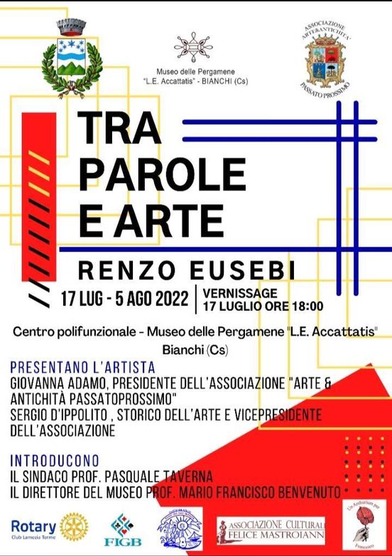 Domenica 17 luglio a Bianchi, luogo unico della provincia di Cosenza, è stata inaugurata la mostra personale “Tra parole e Arte” dell’artista Renzo Eusebi