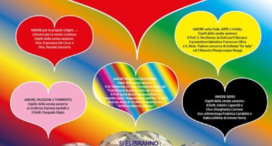 “L’Amore come componente di vita nella Vita Cosenza – Mercoledi 12 Giugno 2019 alle ore 20.30 presso il Cine -Teatro “Aroldo Tieri”a Cosenza ,II’ edizione della manifestazione “ L’Amore come componente di vita nella Vita”,organizzato e sostenuta dall’Associazione “Officina Trentatre” con la Direzione Artistica della dott.ssa Lia Calabria.Patrocinata dal Comune di Cosenza. Condotta da Domenico Pappalettera , Tina Ammirata e il dott.Carmine Calabrese. Lo spettacolo si svolgerà con i seguenti temi: – “AMORE per le proprie Origini… L’Amore per la nostra Cosenza” ospiti del seguente talk show saranno l’Assessore, frazione e quartieri manutenzione delle strade e della rete idrica, Francesco De Cicco e l’Assessore, Comunicazione Turismo marketing territoriale, Rosaria Succurro. – “AMORE FEDE, ARTE e HOBBY” Ospiti : il Prof. Stefano Vecchione, la Dott.ssa Paola Morano ed il Maestro Piergiuseppe Maggi, produttore televisivo e cinematografico Francesco Oliva e Ermanno Reda Patron del concorso di bellezza “For Lady”. – “AMORE E L’ASSOCIAZIONISMO” Ospiti : il Dr. Vitantonio Di Gioia Presidente Eletto del Club Rotarty Rogliano-Valle del Savuto, il Prof. Sante Blasi Presidente ENSI e Concetta Cianni Vice-presidentessa dell’Ass. “Io Noi” e la Dott.ssa Anna Maria Schifino Presidente dell’Associazione “Artisti Eccellenze Calabresi”. – “AMORE, PASSIONE e TORMENTO” Ospiti : la Scrittrice Daniela Santelli e il Dott. Pasquale Nigro. – “AMORE NERO” Ospiti : il Dott. Valerio Caparelli e l’Avv. Margherita Corriere, la Criminologa e Avv. Federica Candelise e Katia (vittima di Amore Nero). Nel corso della serata si esibiranno i seguenti Artisti: il Maestro Piergiuseppe Maggi, l’Attore Emanuele Gagliardi, il Filosofo-Scrittore – Poeta Giuseppe Piluso, la Cantante Alessandra Furlano, la Compagnia Teatrale “I Lunari” con Loredana Marsico, Mario Mirabelli, Sandra Bozzarelli, Antonella Arpaiuolo, Francesco Ammirata, Antonio Gabriele, il Ballerino Alessandro Misasi che si esibirà con la Ballerina Alessia Filipelli della Scuola di Danza “Art Show Dance Academy” dei Maestri Giuseppe Ferraro e Lucia Amodio; la Ballerina Debora Caruso della Scuola di Ballo “Dirty Dancing” del Maestro Romeo e Ilaria Renne . Sul palco del Cine-Teatro “Aroldo Tieri” si alterneranno momenti Culturali e performance Musicali e di Danza;Arte e Cultura unite per il nobile scopo benefico di sostenere l’Associazione “Io Noi” impegnata nelle sue preziose attività rivolte ai ragazzi “ Speciali “.Inoltre si impegna di portarli a raggiungere grandi traguardi nella loro autonomia così da abbattere ogni barriera sociale. Come un fiore sboccia fuori stagione, così è l’amore! Una passione da vivere giorno dopo giorno, coltivando le emozioni vere e cogliendo, in ogni momento, quel fiore raro dal profumo inebriante che si chiama felicità.L’Amore come componente di vita è tutto quello che ci circonda, un sentimento che costituisce una buona parte dell’essere umano. L’uomo non può vivere senza imbattersi in questo sentimento dalle sfumature infinite tant’è che l’umanità trascorre buona parte della propria esistenza a cercare l’amore in ogni sua forma. Tale tema pulsante è diventato un importante manifestazione sull’Amore in tutte le sue forme.”