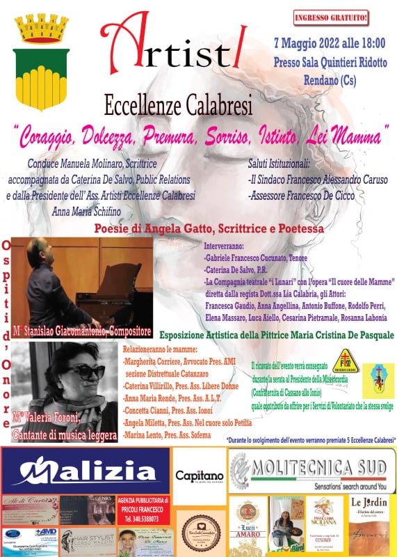 Sabato 7 maggio 2022 alle 18,00 presso “Sala Quintieri” Ridotto del Rendano a Cosenza, ospiterà l’evento, “Coraggio, Dolcezza, Premura, Sorriso, Istinto, Lei Mamma”