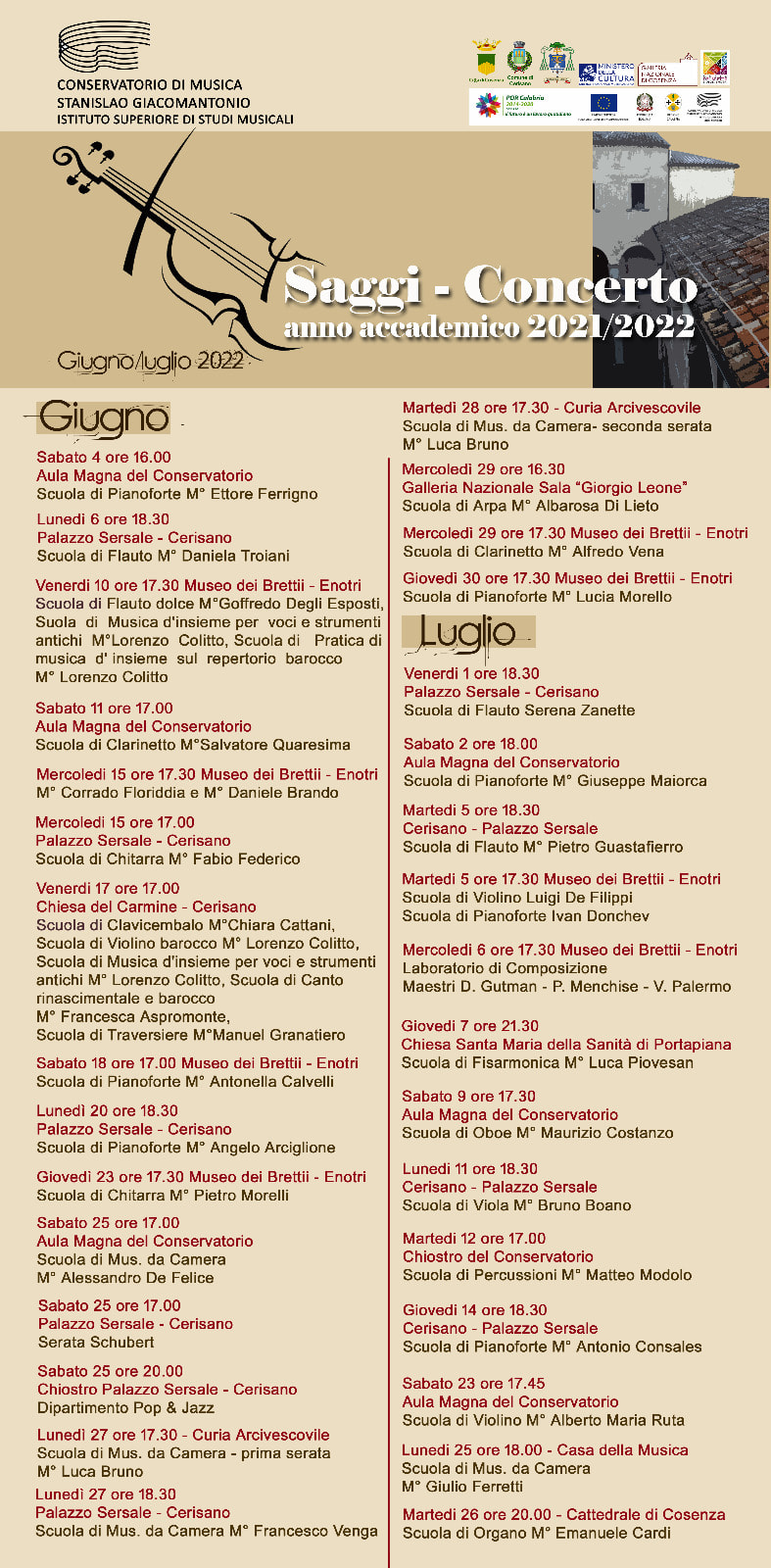 Anche quest’anno si rinnova l’attesissimo appuntamento con i Saggi-Concerto del Conservatorio di Musica “S. Giacomantonio” di Cosenza