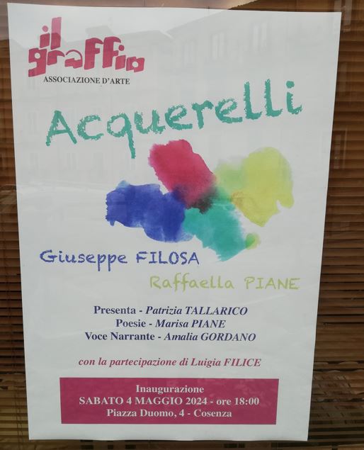 A Cosenza inaugurazione della mostra di Acquerelli di Giuseppe Filosa e Raffaella Piane