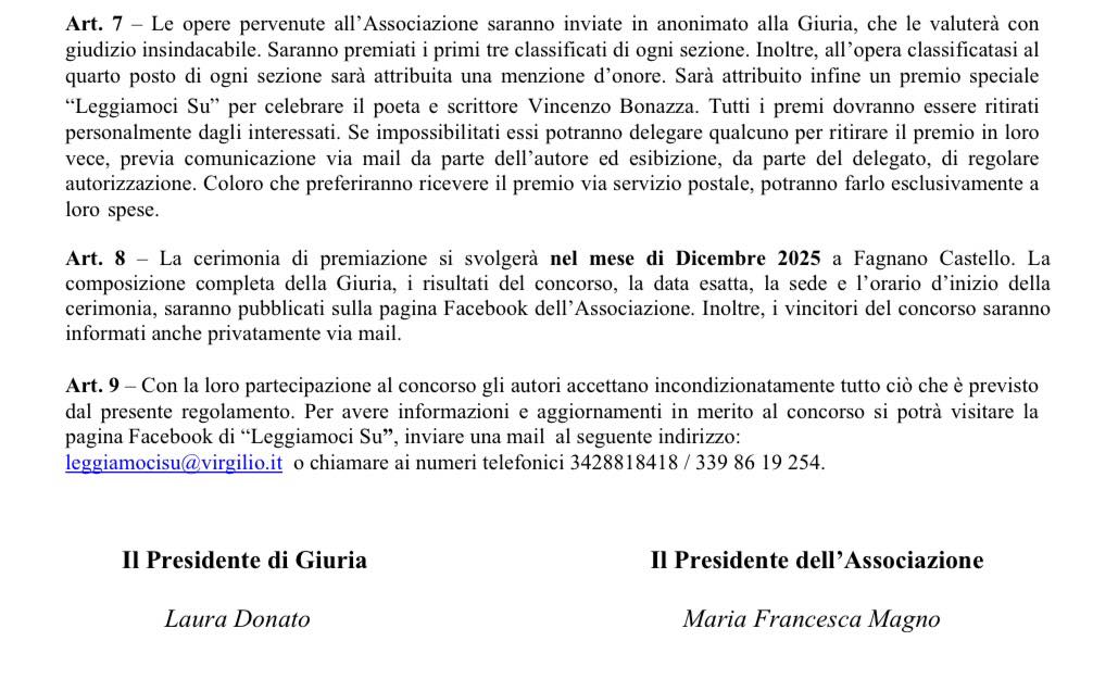 L’evento di premiazione si terrà a Fagnano Castello (Cs), nel mese di dicembre.