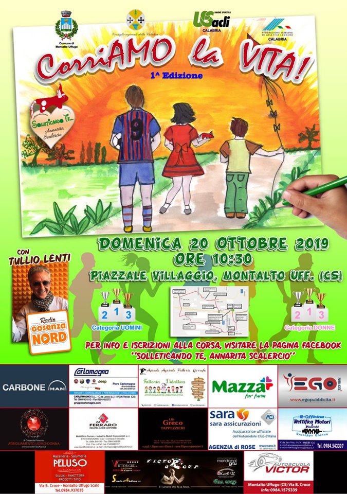 Il progetto “CorriAmo la VITA” si svolgerà a Montalto Uffugo scalo, via Villaggio, il 20/10/2019 alle ore 10:30.