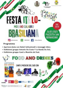 «È una straordinaria occasione di scambio tra culture che, seppur differenti per origini, rivelano numerose convergenze di carattere sociale sviluppatesi parallelamente al fenomeno migratorio che ha interessato e decimato il nostro Comune dallo spirare del XIX secolo e per gran parte del Novecento», afferma il primo cittadino Mario Donadio. «La Festa Italo-Brasiliana è per tutti noi un modo per valorizzare Morano, non solo per i suoi pregi artistici e architettonici, ma quale luogo d’incontro tra identità diverse, nell’ottica di un proficuo dialogo internazionale, lo stesso che stiamo curando nell’ambito del progetto CESIM e che rafforzeremo nel nostro imminente viaggio istituzionale in Sud America».