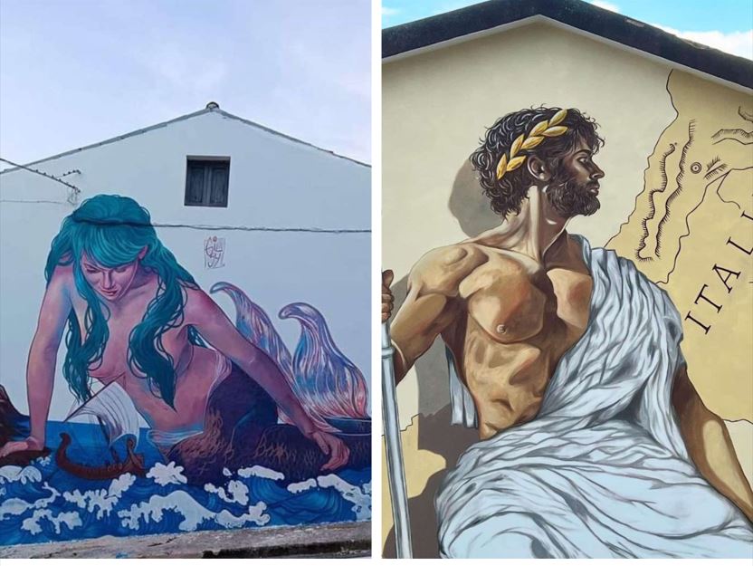 L’altro murales è dedicato alla Sirena Ligea, rappresenta il legame della Calabria con la mitologia greca e Ulisse attraverso la ninfa Ligea dall’artista Giusy Guerriero @giu.art.