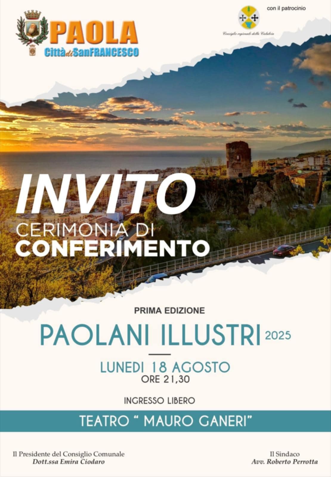 Lunedì 18 agosto alle ore 21,30, nella cornice del teatro all’aperto “Mauro Ganeri” ai sette canali, sarà presentata l’edizione 2025 di “Paolani Illustri”, l’appuntamento che rende omaggio alle personalità nate a Paola che hanno saputo distinguersi nei campi della cultura, dell’arte, della scienza, dello sport e dell’impegno civile in Italia e nel mondo.