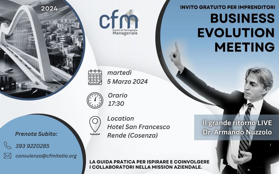 Nella prossima settimana a Rende si terrà un corso di formazione per imprenditori, tenuto dal Dr. Armando Nuzzolo