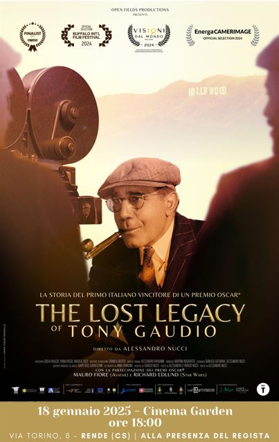 The Lost Legacy of Tony Gaudio, per la regia di Alessandro Nucci, già vincitore della menzione speciale della Giuria al Festival internazionale del documentario “Visioni dal Mondo” di Milano, dopo la presentazione di dicembre scorso a Los Angeles, ritorna ora a casa per una serata evento al Cinema Garden.