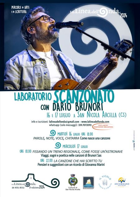 Si terrà nelle giornate di martedì 16 e mercoledì 17 luglio 2024 nello splendido borgo di San Nicola Arcella, la quinta edizione de La Linea dell’onda con un ospite d’eccezione: Dario Brunori che porterà a San Nicola il suo “Laboratorio scanzonato”