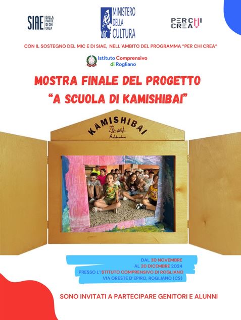 Il progetto: “A scuola di Kamishibai”, scritto dai docenti Andrea Cirolia e Giovanni Canadè, che si è svolto da marzo 2024 nei locali della scuola di via Oreste D’Epiro, ha interessato 40 alunni delle scuole Primarie di Rogliano e Marzi e ha visto anche la partecipazione dei docenti: Graziana Vallone, Mariafrancesca Argento, Nora Mastroianni, Antonella Marsico, Patrizia Bruno.