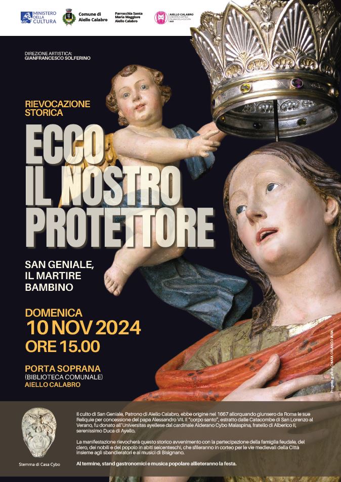 In un’atmosfera suggestiva i partecipanti potranno rivivere il fascino del 1667 e riscoprire la storia di San Geniale, Patrono di Aiello Calabro, tra racconti di miracoli e gesti di fede che hanno lasciato un’impronta profonda nella tradizione locale.