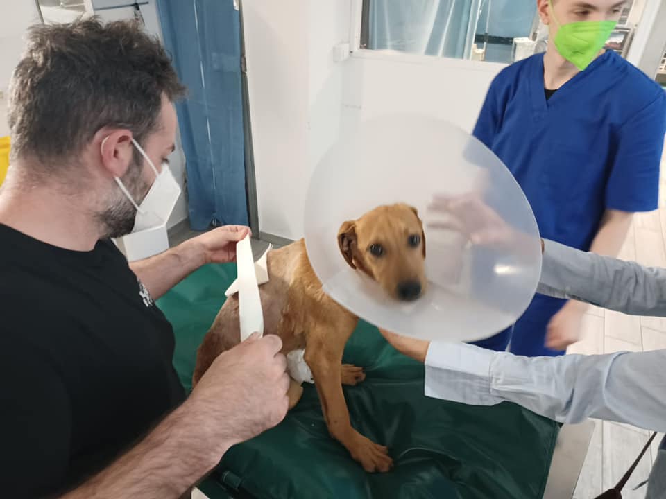 Immediatamente lo abbiamo portato in clinica e sottoposto ad intervento per stabilizzare la colonna vertebrale avrà bisogno di un altro intervento perché ha il femore rotto.
