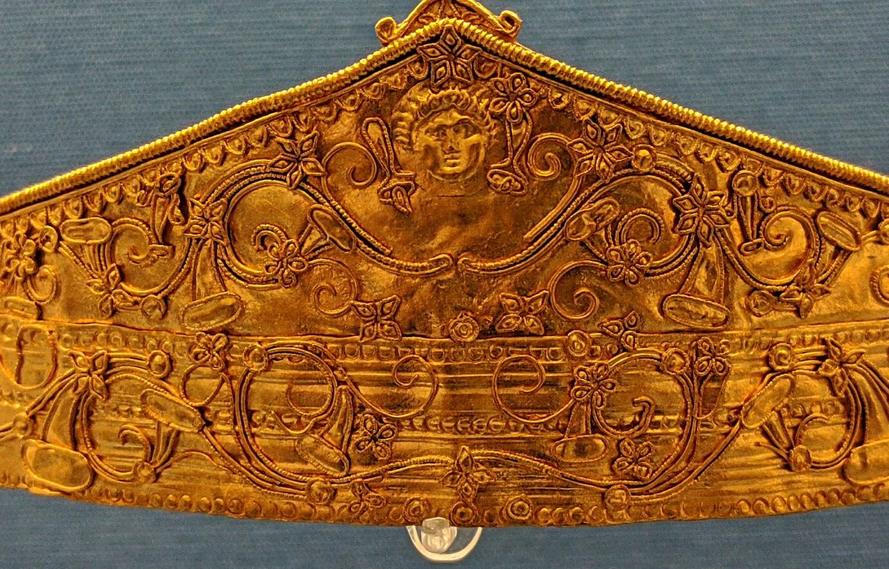 Custodito oggi in una delle teche centrali della Sala 73 al terzo piano del British Museum di Londra nella sezioni dei reperti e tesori della Magna Grecia, questo insieme di monili in oro datati 300 a.C. proveniva dalla colonia greca di Terina. La fondazione di Terina, databile al primo ventennio del V secolo a.C. in base all’inizio della sua emissione autonoma di monete (480-460 a.C.), avvenne vicino al mare (molti studiosi pensano sul sito di un preesistente insediamento), nella zona identificata dagli scavi archeologici in contrada Giardini di Renda, con l’acropoli situata sull’altura di Sant’Eufemia Vetere circondata da una serie di piccoli suburbi.