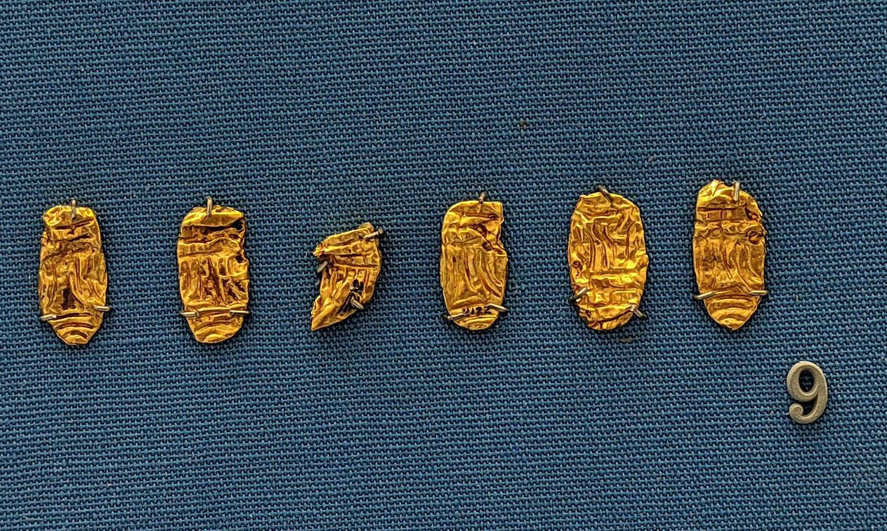Dopo averli raccolti, li mostrò a due compaesani, Francesco Montesanti e Antonio Zarra. I due, dopo aver raggirato il malcapitato facendosi vendere i monili “in cambio di pochi fichi secchi”, si fecero accompagnare sul luogo del ritrovamento e recuperarono altri oggetti, alcuni contenuti in un vaso, sparsi tra frammenti di ossa umane e pezzi di ceramica. Tutto fu poi consegnato ad una guardia campestre del fondo il quale trovò altri pezzi d’oro scavando intorno al fosso…