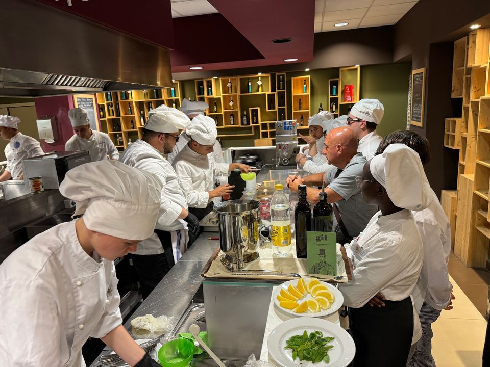 Gli alunni della IV B si sono dimostrati preparati e attenti nel valorizzare la cultura del senza glutine, creando piatti che sapevano davvero di Calabria, seguiti dai prof. Orlando e Laise.