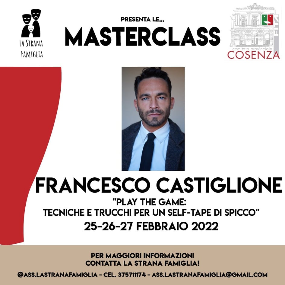 Francesco Castiglione “Play The Game: Tecniche e trucchi per un Self-Tape di spicco” 25-26-27 Febbraio 2022