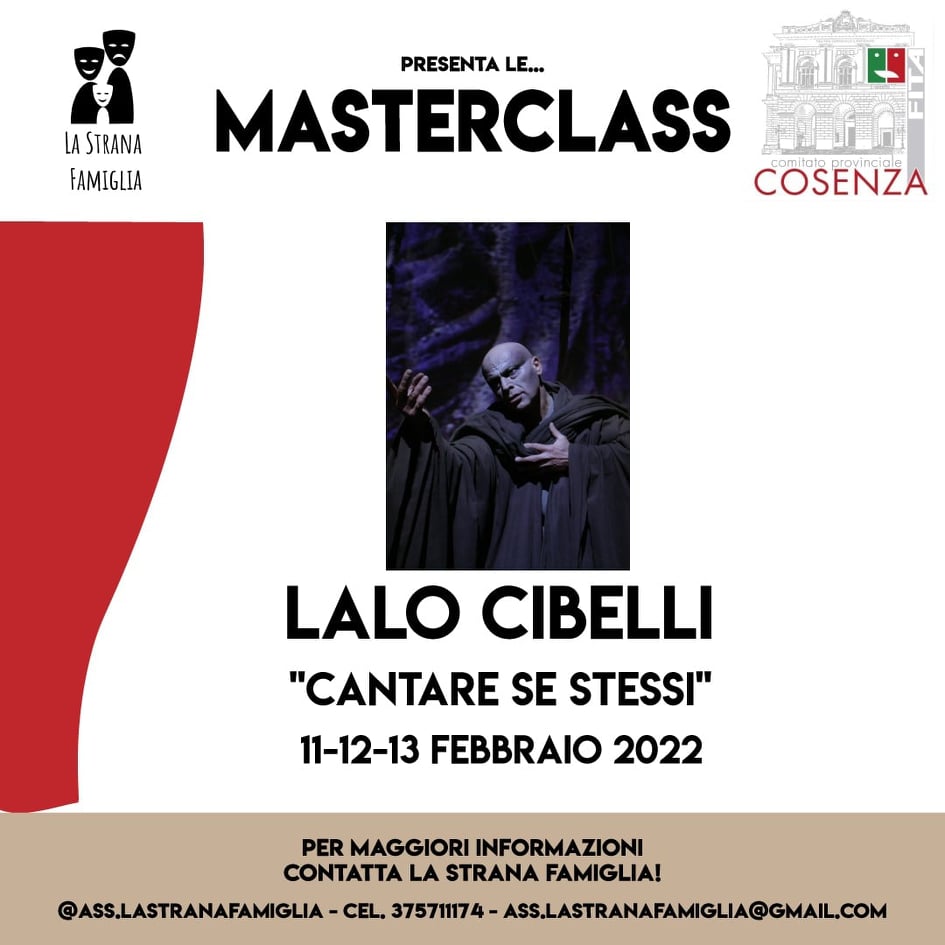 L’associazione “La Strana Famiglia” presenta una serie di Masterclass che mirano alla formazione e all’approfondimento attoriale.