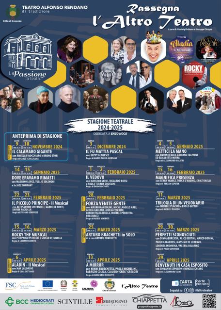 Sul palco del teatro A. Rendano 15 appuntamenti dal 9 novembre 2024 al 29 aprile 2025.