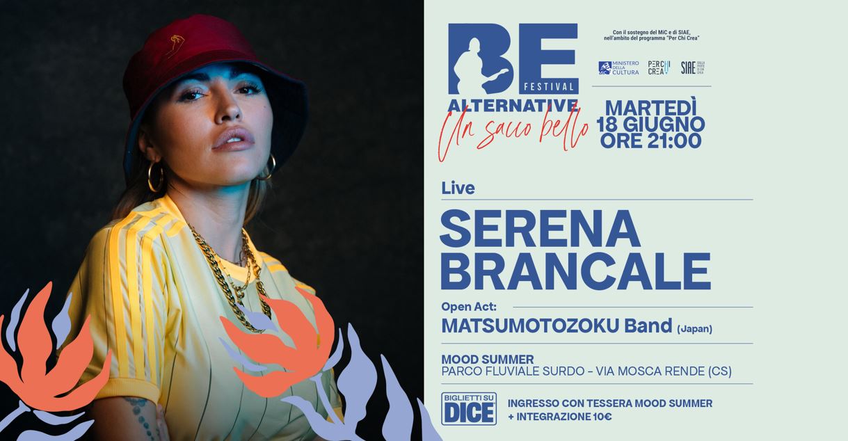 Spazio poi martedì 18 giugno a Serena Brancale, polistrumentista, performer e compositrice, dal sound caleidoscopico che incorpora diversi generi musicali: dal soul al jazz, dal pop al R&B senza tralasciare i suoni dell’elettronica con cui sperimenta grazie a pad, tastiere e loop station, che torna in tour dopo il successo virale del singolo “Baccalà”. In apertura arrivano dal Giappone i Matsumoto Zoku Band,in chiusura il dj-set di Dj Kerò.