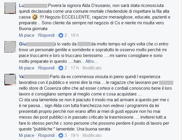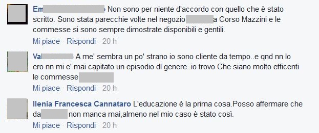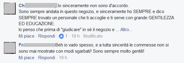 Abbiamo oscurato il nome del negozio per non attribuire ulteriore peso alle parole della D’Eusanio, e non mettere in croce una commessa (ed un’attività) senza aver prima ascoltato entrambe le campane…
