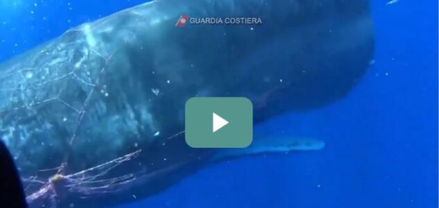 “Da oltre due giorni ambientalisti, biologi e sommozzatori della Guardia costiera tentano di liberare il cetaceo da una grossa rete che rischia di ucciderlo.”