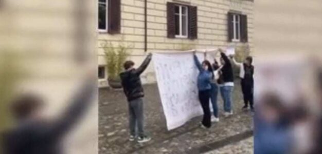 I ragazzi e le ragazze della scuola si sono radunati davanti al Palazzo della Provincia di Cosenza, sotto la statua di Bernardino Telesio, questa mattina per far partire un sit-in fatto di fumogeni, cori e striscioni