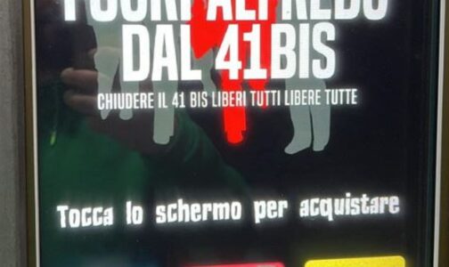 La scritta è con il sottotitolo “Chiudere il 41 bis. Liberi tutti, libere tutte”