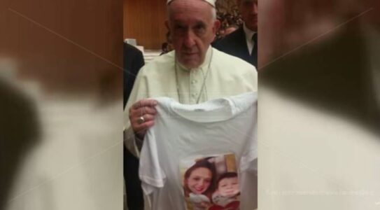 Il Santo Padre ha ricevuto la maglietta con la foto della giovane mamma, di Christian e Nicolò scomparsi due mesi fa durante l’alluvione che si abbatté su San Pietro Lametino