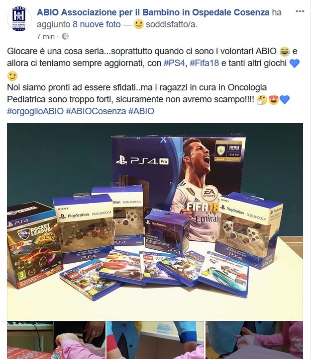 “Giocare è una cosa seria…soprattutto quando ci sono i volontari ABIO! … e allora ci teniamo sempre aggiornati, con PS4, Fifa18 e tanti altri giochi …