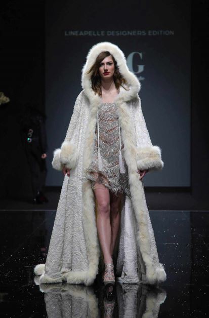 Tra i capi cult della collezione, applaudita, tra gli altri, dalla cantante e showgirl Sabrina Salerno, dagli attori Stefano Sala, Giorgia Fiori, Simone Gallo, dal personaggio televisivo Giuseppe Garibaldi e dallo speaker motivazionale Arturo Mariani, spicca una mantella bianca bordata di pelliccia, preziosissima di pizzo, interamente ricamata con cristalli, jais, swarovski, perline e paillettes. La palette cromatica vira dal nero profondo, al rosso, all’avario, fino alle sfumature del marrone.