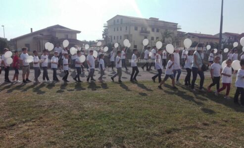 Il piazzale alle spalle della Chiesa di Santa Caterina a Gizzeria è colmo di persone in preghiera per l’ultimo saluto alla giovane mamma Stefania Signore ed ai suoi piccoli Christian e Nicolò di 7 e 2 anni