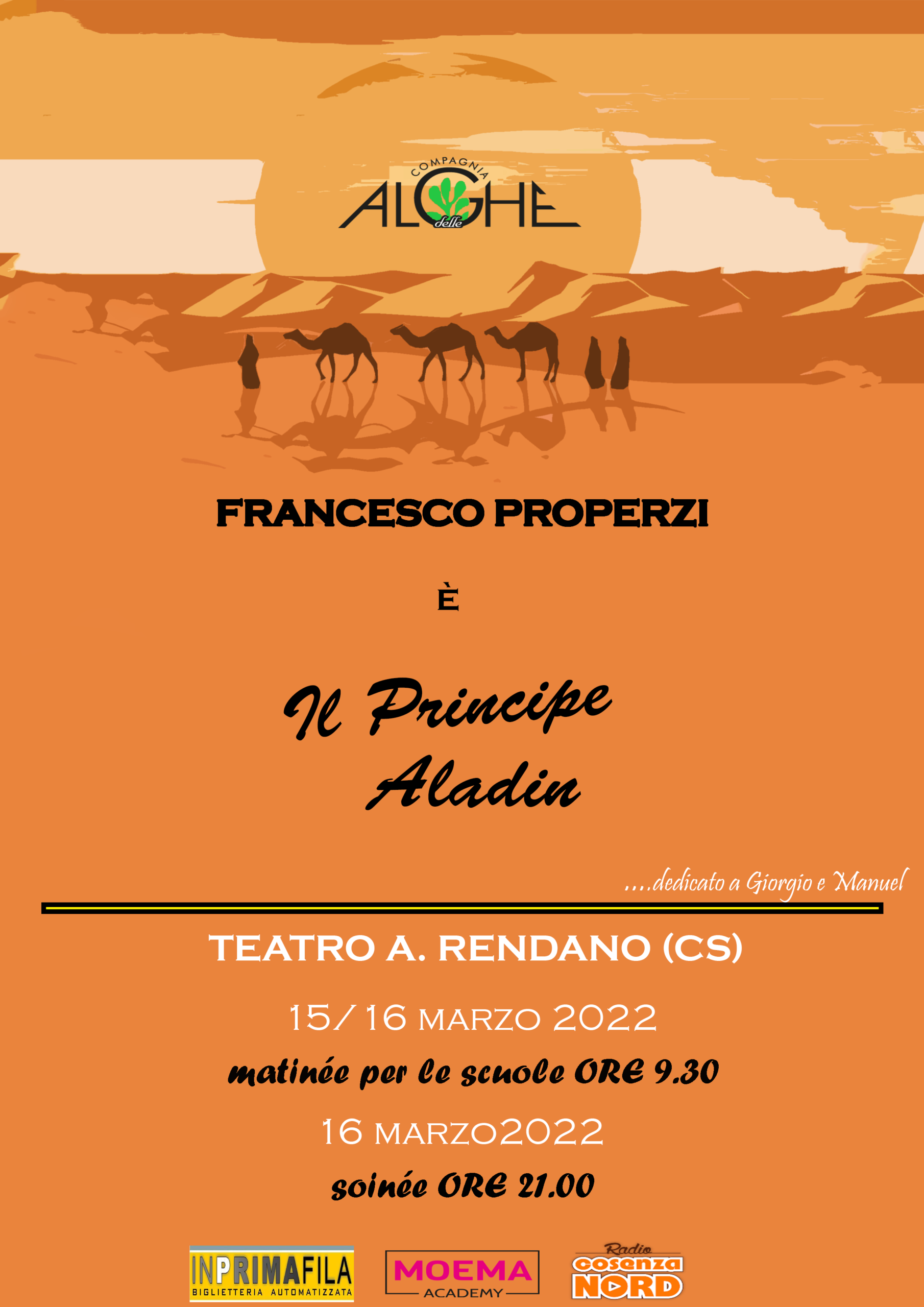Da sottolineare anche l’importante collaborazione con Moema Academy, uno dei fiori all’occhiello della realtà calabrese nel settore moda e make-up, che vestirà e colorerà i sogni de Il Principe Aladin. Il ritorno in scena sarà dedicato alla memoria di Manuel Frattini, «il divo italiano del musical», e Giorgio Naccarato, per anni interprete della Compagnia nonché appassionato speaker radiofonico, entrambi indimenticati amici delle Alghe. Con l’occasione, Radio Cosenza Nord sarà radio partner dell’evento.