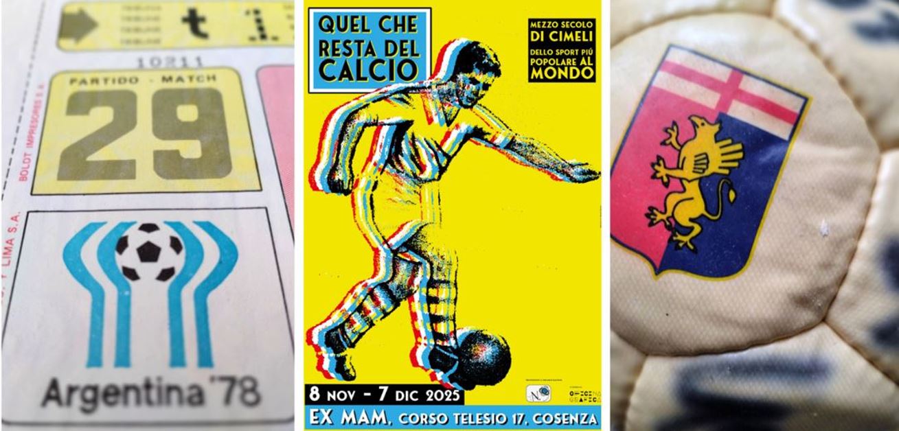 Dall’ 8 novembre al 7 dicembre 2025, nelle suggestive sale espositive dell’ex MAM di Cosenza, nel cuore del centro storico della città, sarà visitabile la mostra “Quel che resta del calcio. Mezzo secolo di cimeli dello sport più popolare al mondo”. La mostra, curata da Marco Toscano, è organizzata e prodotta da Associazione N.9