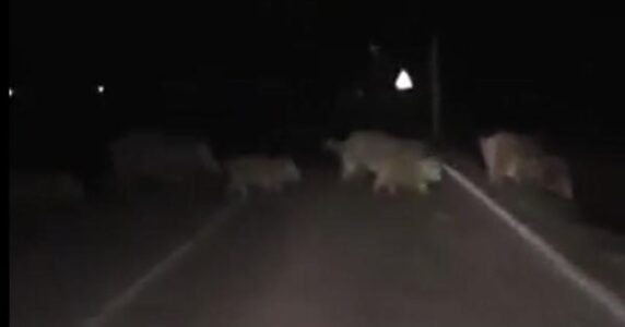“Attenzione in zona Santa Chiara a Rende. Numeroso branco di cinghiali attraversa pericolosamemte la strada”