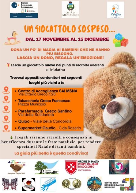 Mendicino lancia l’iniziativa “Un giocattolo sospeso” Novembre 17,12:00 AM By Redazione In News,Società,
