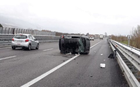 Auto si ribalta sull’A2 del Mediterraneo a Sala Consilina. Feriti due calciatori del Rende