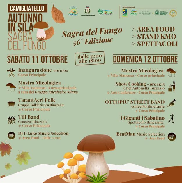 L’appuntamento è quindi a Camigliatello Silano per il weekend dell’11 e 12 ottobre, con la 56ª Sagra del Fungo, e poi per tutti i fine settimana fino al 2 novembre con Autunno in Sila 2025: un mese intero di gusto, tradizione, musica e natura nel cuore della Sila.