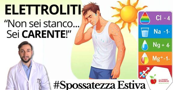 Gli elettroliti sono minerali presenti nel nostro corpo che svolgono un ruolo cruciale in numerose funzioni fisiologiche. La sudorazione accentuata in questo periodo causa una continua dispersione di questi minerali che non riusciamo a reintegrare correttamente. Ciò comporta una marcata stanchezza che a volte sembra ingiustificata ma che è motivata da questo fenomeno. Gli elettroliti principali sono sodio, potassio, cloruro, calcio, magnesio, bicarbonato e fosfato e sono essenziali per: