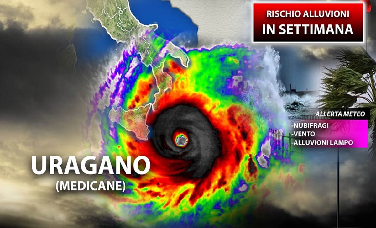 “Si è rafforzato fino ad essere classificato come uragano mediterraneo, con venti di oltre 100 km/h, il ciclone che sta impattando sull’Italia con alluvioni in Calabria e nel resto del Sud.”