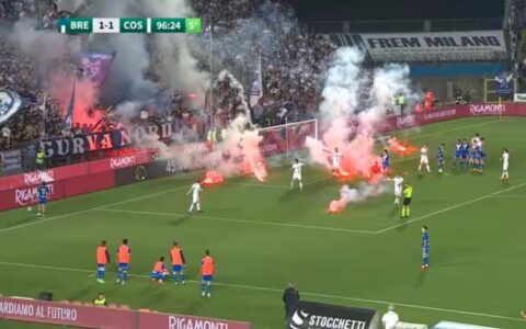 “Sconfitta per 3-0 a tavolino e due partite da giocare a porte chiuse. E’ questa la sanzione inflitta al Brescia dal giudice sportivo di Serie B in relazione agli incidenti avvenuti dentro e fuori lo stadio ‘Rigamonti’ nella partita di ritorno dei playout con il Cosenza, gara sospesa nel finale giovedì scorso. Il club lombardo è stato punito per responsabilità oggettiva, anche in base al referto dei collaboratori della Procura federale riguardante gli scontri tra tifosi del Brescia e forze dell’ordine all’esterno dell’impianto, che tra l’altro hanno obbligato gli ufficiali di gara ed i componenti delle due società a rimanere nello stadio fino a tarda notte.”