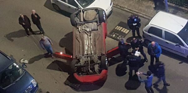 “Momenti di paura questa sera a Cosenza per un brutto incidente. Un’auto dopo aver tamponato un’altra vettura si è cappottata.