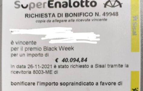 “E’ successo venerdì ad una coppia divisa a causa della pandemia. Il marito aveva perso il lavoro a Reggio Calabria a causa del Covid ed era stato costretto ad emigrare a Milano per lavorare come cameriere. Lei, segretaria in uno studio dentistico, ha vinto 40.000€ e ha immediatamente videochiamato il marito in un momento di straordinaria felicità.”